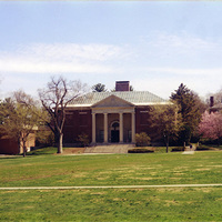 The Addison Gallery of American Art was built in 1930 through the generous gift of Thomas Cochran. It is named for his friend Mrs. Keturah Addison Cobb. It also provided funds to purchase the art collection for the permanent collection. Included in the collection is the school's copies of the Audubon Double Elephant Folio of Birds and his lesser known Folio of Quadrupeds. This is an unattributed photo of the Addison Gallery in the Spring with the trees in blossom.