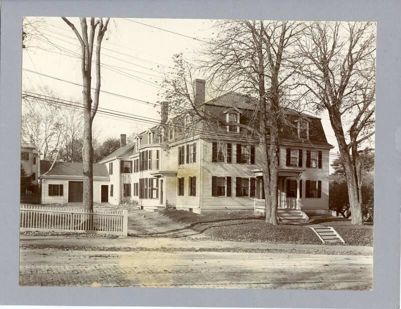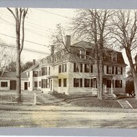 America House located at 147 Main Street and built in 1825 was originally called Blunt House. In 1832 Samuel F. Smith, a member of the class of 1834 of the Seminary wrote "America" and set the words to a German tune he had been translating for Lowell Mason, an instructor of his. It was also called the Clark House from 1908 to 1919. This view was taken as the trolley tracks were being laid and the road and driveway are still to be repaired.