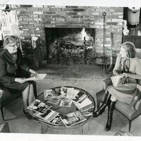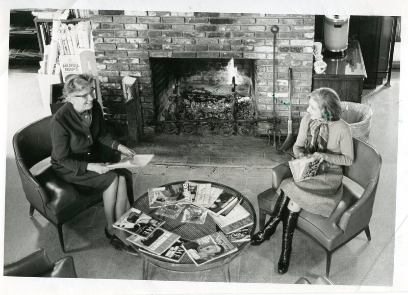 Although the ladies aren't enjoying the free hot coffee behind them, they are enjoying the warmth of the fire.