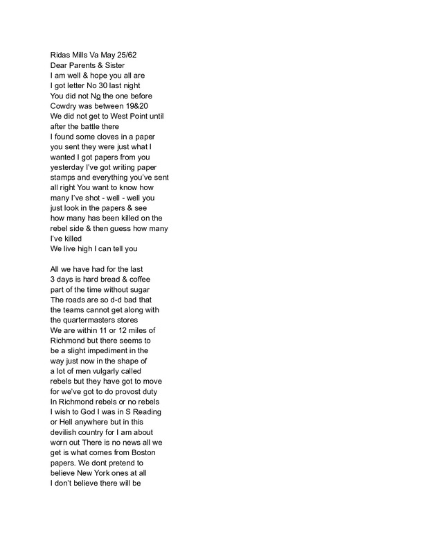 - I.E. Green Letter May 25, 1862