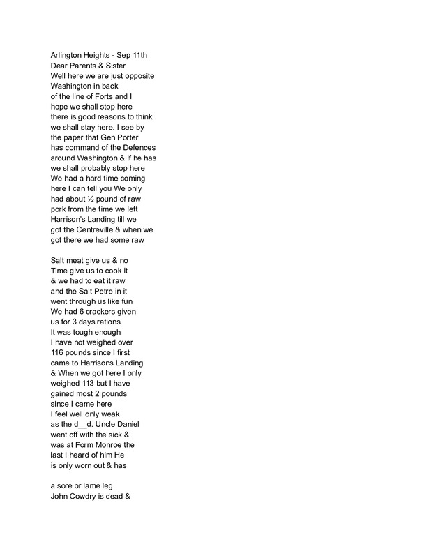 - I.E. Green Letter September 11, 1862