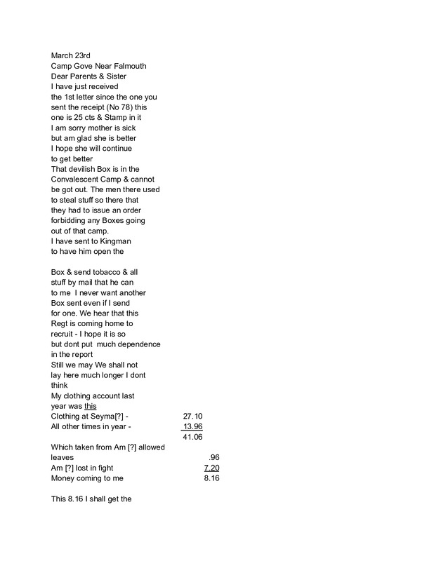 - I.E. Green Letter March 23, 1863
