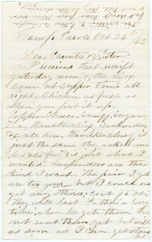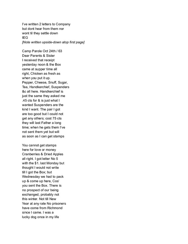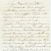 - A letter from Isaac Edward Green to his parents and sister, Lucinda.