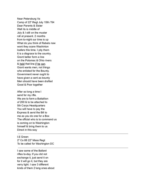 - A letter from Isaac Edward Green to his parents and sister, Lucinda.